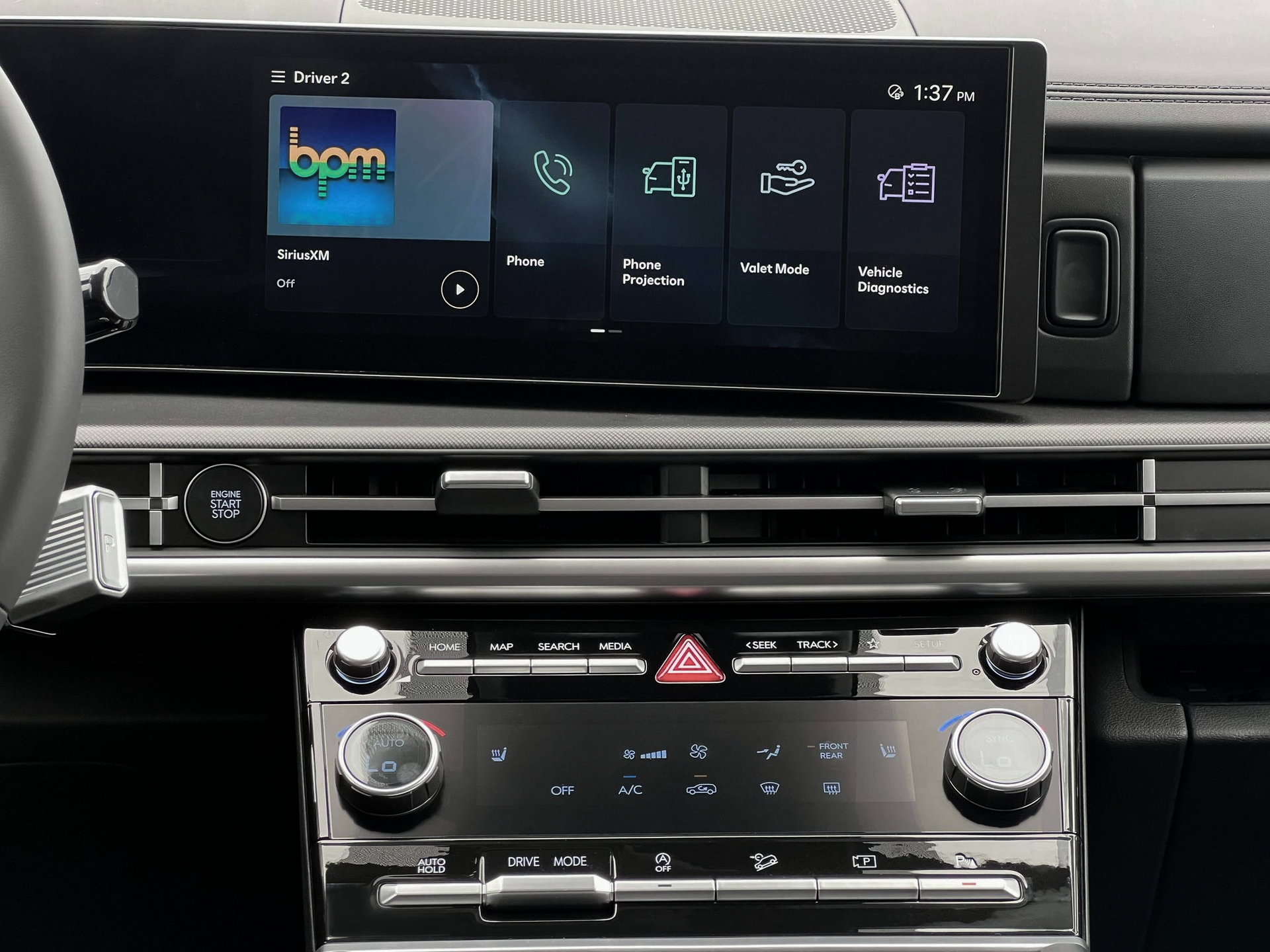 - Radio: AM/FM/HD Display Audio -inc: 6 speakers, 12.3" display, Apple CarPlay, Android Auto, Bluetooth® hands-free w/wireless audio streaming, USB connectivity, SiriusXM, Blue Link+ connected car system and rear seat quiet mode